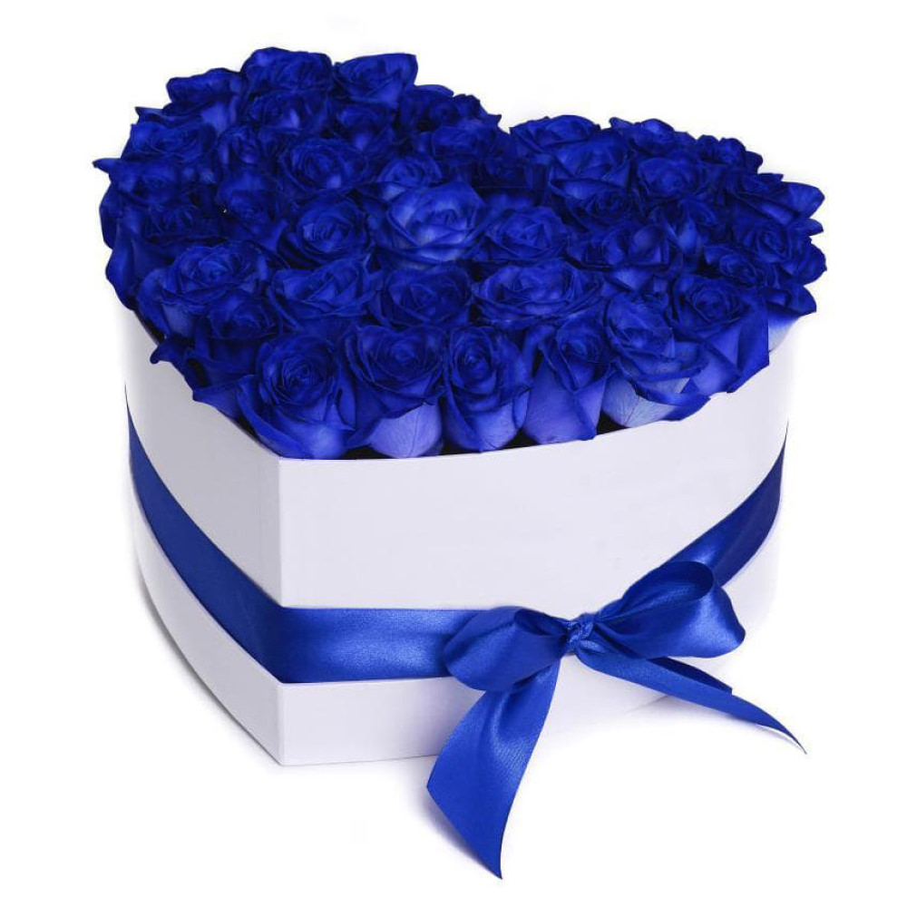 Цветы в коробке «Синее сердце» с доставкой по г Александровск-Сахалинский: вы можете купить букет в супермаркете цветов «Флормания» по цене от 3099 руб.