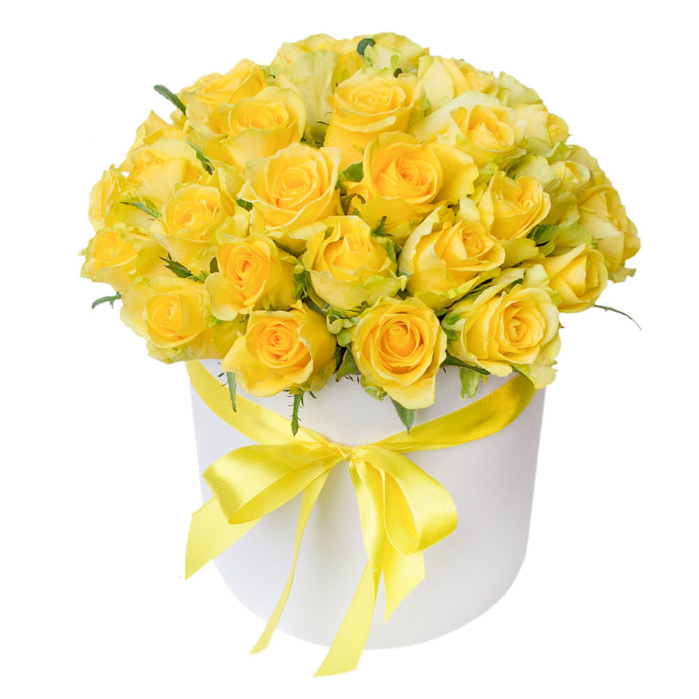 Цветы в коробке «Желтые Розы» с доставкой по г Александровск-Сахалинский: вы можете купить букет в цветочном интернет-магазине «Флормания» по цене от 3099 руб.