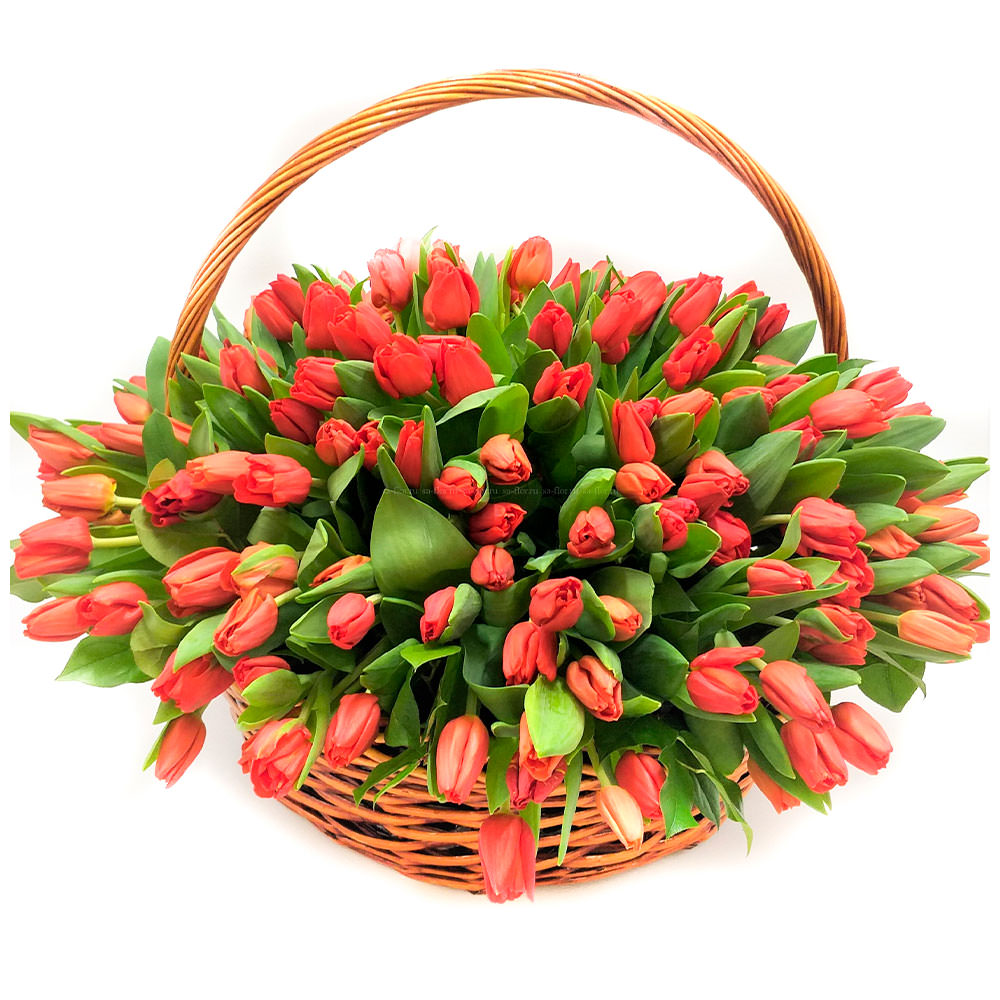 Цветы в корзинке «Красные тюльпаны» с доставкой по г Александровск-Сахалинский: вы можете заказать букет в супермаркете цветов «Флормания» по цене от 3599 руб.